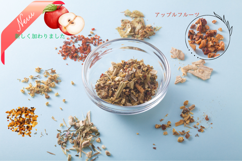 新たに林檎が加わりました!更においしくなって、体調を崩す前に毎日飲みたいお茶です。「あれ、今日ちょっとしんどいな」と感じたら1時間おきに一杯。ガブガブ飲んでください。